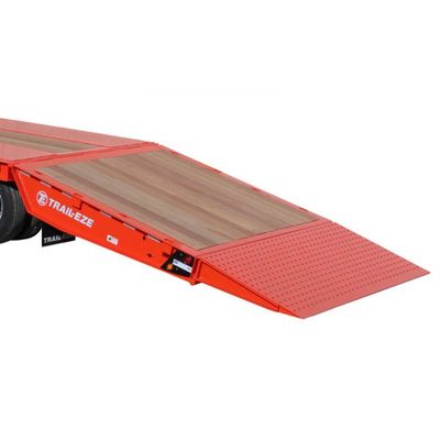 WINCH: 12,000 Lb. at front of upper deck, 60` cable, wireless remote control. TOOL BOX: (2) tool boxes with lids, located in front corners of upper deck. PARK STANDS: Pin drop. PLATFORM: 1 1/2" Apitong decking, 1/4" Steel tread plate wheel covers and 1/4" Traction plate on 4` flip under.