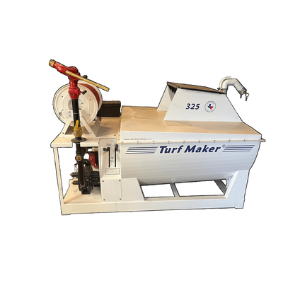 The TurfMaker Model 325 hydroseeder, with mechanical agitation, is a cost effective alternative to jet agitation machines. Typically, jet agitation hydroseeders are limited to soupy slurries of paper mulch. Soupy paper mulch applications washout easily with rain and frequently yields spotty seed germination. Poor grass growing results make unhappy customers. The TurfMaker 325 easily mixes and pumps thicker wood mulch slurries associated with Sod Quality Results and happy satisfied customers.