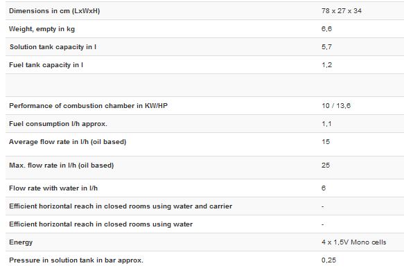 Only 78cm total length and an empty weight of 6,6 kg make the TF 34 the smallest and lightest Thermal Fog Generator of the IGEBA product range. It was designed with the main objective of indoor fogging and is characterised by its compact size, light weight and excellent emission values. Of course it can also be used outdoors.