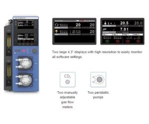 - Two peristaltic pumps for adding nutrients and other liquids or when diluting the batch
