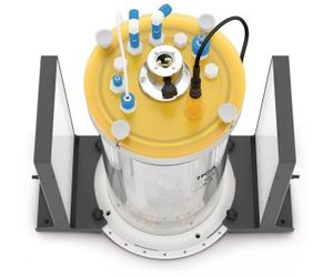 The PT 100 temperature and the pH sensor are also inserted through the lid. The stirrer motor is connected to a completely detachable coupling leaving the integrity of the reaction vessel intact following GMP standards. It provides a speed range of 10 to 100 rpm.