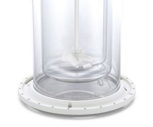 The 10 liter jacketed reactor vessel has quick connect fittings making it easy to connect a chiller/circulator. A sparger ( for adding gases such as CO2 ), as well as a PTFE coated impeller with two height-adjustable propellers are also included in the scope of delivery.