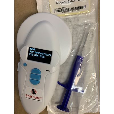 Sterile Pouch containing a 12mm Glass PELIT with both the RFID# and the veterinarian’s phone number preloaded in a surgical Cannula packaged together with 6 barcode labels. This packet is labeled with an indicator certifying its sterility. It is ready to use after removal from the Sterile Packet.