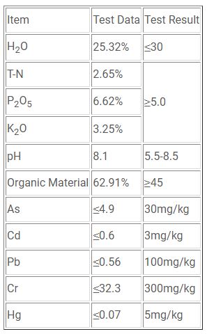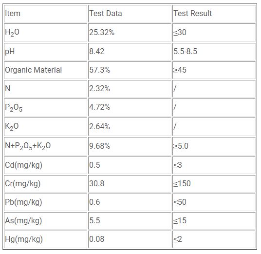 The organic fertilizer processed by the in-vessel composting method fully conforms to the national standard.