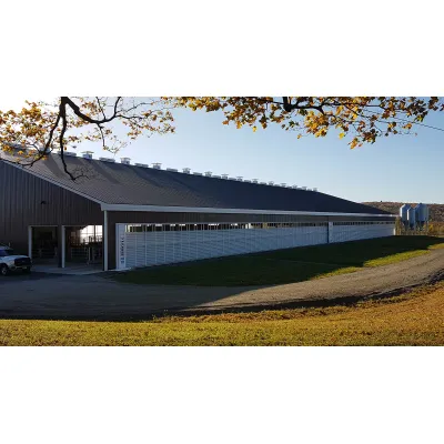 The ISOCELL Z-wall is designed specifically for livestock houses, providing an optimal solution for natural ventilation in dairy, goat, and calf barns. This inflatable curtain system is ideal for regions with severe cold winters, utilizing patented ISOCELL technology to offer double the insulation of conventional curtains. The system features membranes that act as partitions, which can be inflated to create variable side openings. High-performance blowers included in the system allow for easy regulation of building walls by adjusting the airflow into the membranes, enabling partial or complete opening and closing. The unique 'Z' structure design comprises multiple insulating cells, minimizing heat transfer between external cold air and internal warm air. This results in an efficient, insulated barrier that maximizes ventilation while reducing heating costs, making the ISOCELL Z-wall one of the most economical solutions on the market.