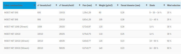 Our insect net limits the presence of pests in crops inside greenhouses. They have been designed to offer the maximum possible protection and effectiveness, with the highest quality. Its small pore size acts as a protective barrier against the passage of tiny insects.