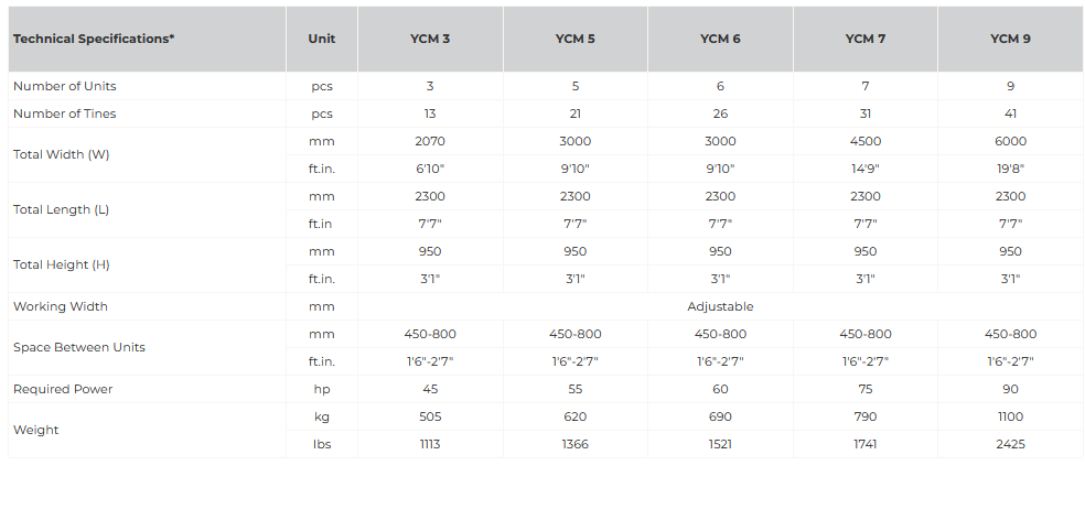 The primary soil tillage machine is mounted from tractor`s hydraulic lifting unit and transportation to the field can be easily done.Machine is produced as 5, 7, 9, 11, 13, 15, 17 and 19 rows and used for hoeing of plants.Detrimental effect of weeds on the plants starts 1-1,5 months later from the planting date. The machine is used for rising of soil and weeding during the growing period of plants. This process accelerates growing of the plants. Row space of machine is adjustable and fertilizing mechanism can be added according to demand.