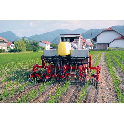 The interrow cultivator is a professional machine for interrow (28 to 75 cm) treatment of maize, sugar beet, cabbage, onions, carrots, lettuce, potato, etc. Its use prevents the growth of weeds, reduces soil compaction and limits water evaporation from the soil. It also offers the possibility of simultaneous fertilizer dispensing.