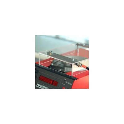 When transporting small parts in the vibrating conveyor bowl there is a risk that the parts can become electrostatically charged. The correct separation of the charged parts becomes difficult. With an ionizer, the charged parts can be neutralised, shortly before leaving the bowl, in the region of the sorting element. The ionizer used in elmor C1 seed counter is manufactured by a specialized company, which is represented worldwide. The head of the ionizer is attached inside of a dust cover.