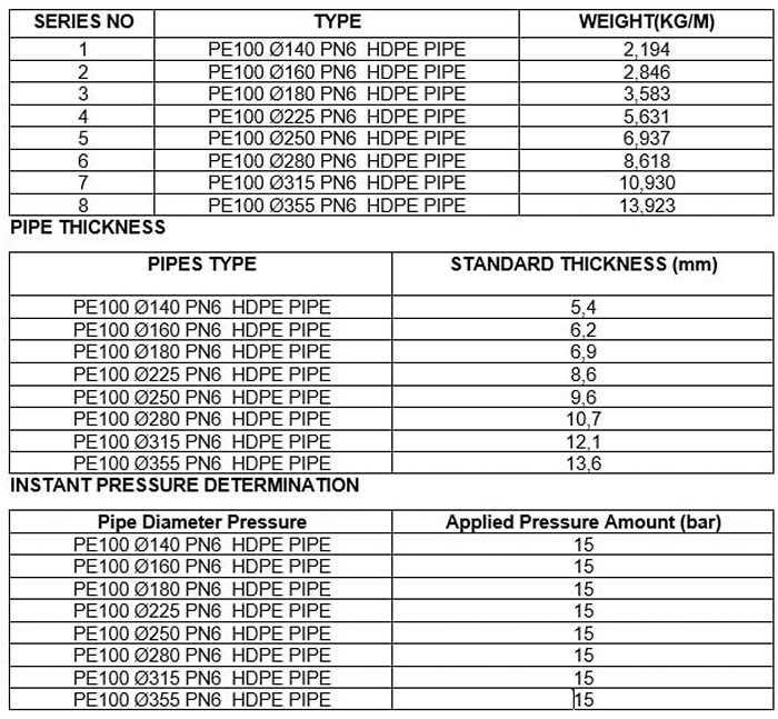 Following you can find the type of PVC pipes used to transfer water from its source (well, lake, river …etc) to the pivot.