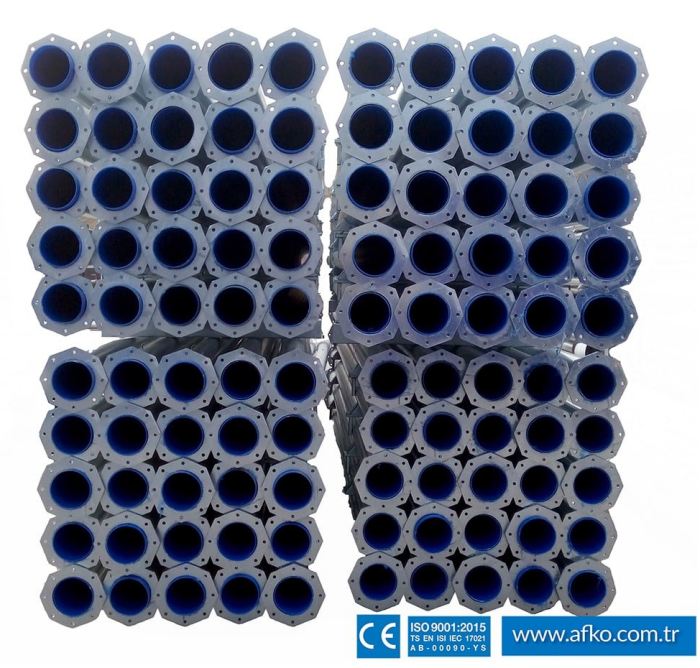 AFKO Center pivot irrigation systems main pipes: Mainly, AFKO uses several types of pipes, the ones used inside the pivot are galvanized, plugs for sprinklers with spacing of 113″. they are called main pipes as they are the main component of the pivot system, the main pipe is provided in two main lengths: