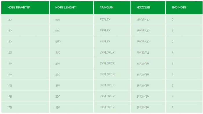 - Set of nozzles EXPLORER raingun from Ø 28 to Ø 40