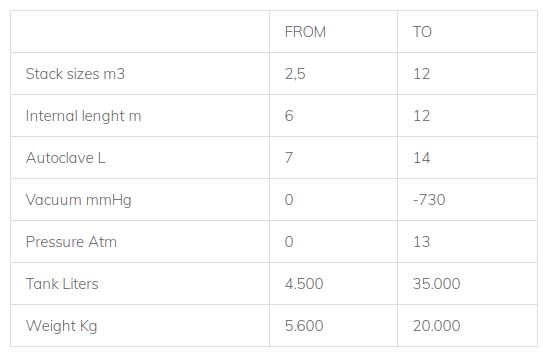 - An autoclave capable of resisting a vacuum of -700mmHg at a pressure of 12 atm.