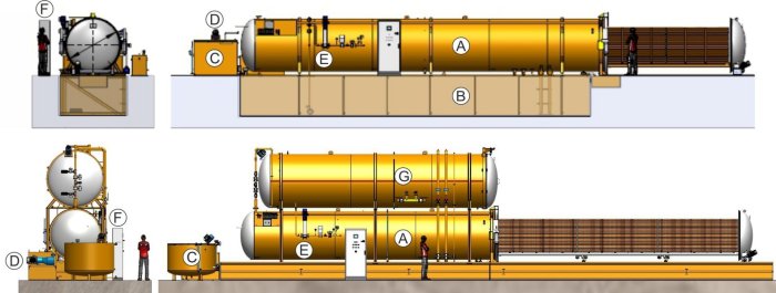 On termination of the treatment phases, the solution not absorbed by the wood returns to the lower tank by means of a discharge valve positioned on the bottom of the autoclave.