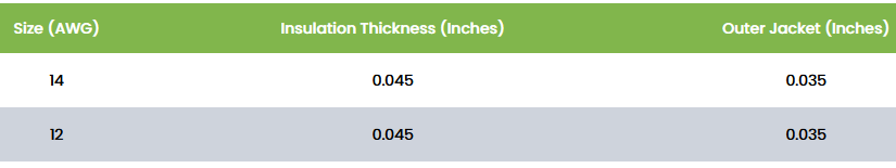 • Conductor: Soft drawn bare copper (ASTM Spec. B-3). Solid (14 awg - 12 awg)