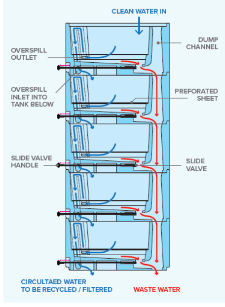 - Containers are equipped with a sloped bottom to collect faeces, pseudo-faeces and other loose impurities.