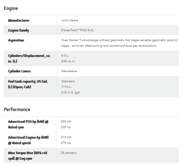 Standard CommandView™ III cab offers unsurpassed amenities. PowerTech™ PSS cooled exhaust gas recirculation (EGR). General maintenance. 3-point hitch and CommandCenter™ controls boost productivity. JDLink™ services and Service ADVISOR™ diagnostic systems.