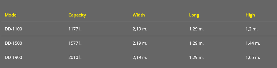 High density polyethylene tank to increase the treatment autonomy, on a high elastic limit steel chassis, filling and suction filter, hydraulically operated pump for transfer or agitation with solenoid valve operated by electric control in the cabin.