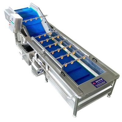 Industrial fruit washing machine is a kind of industrial washer, which works by using the bubbles generated at the bottom of the washing pool and the water sprayed from the upper nozzle to wash the fruit. This can clean off the dirt, dust and other stains on the surface of the fruit in a short time. This washer was initially designed for an Australian customer to wash strawberries, blueberries, apples, citrus and many other types of fruit. The washer is made of thick 304 stainless steel, which can clean 500-800Kg of fruits per hour.