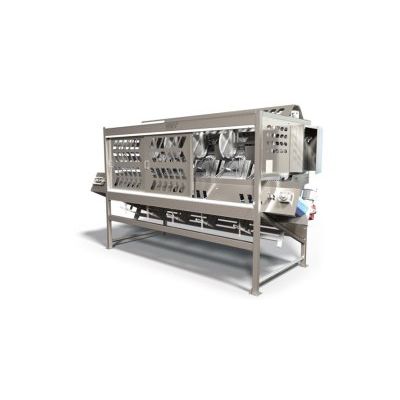 The Potato Halver cuts too-long potatoes in half crosswise, so that french fry processors can simply and efficiently increase yield, achieve length specifications, and prevent product length-related packaging problems. The potato halver achieves consistent, accurate handling at capacities up to 360 potatoes per minute.