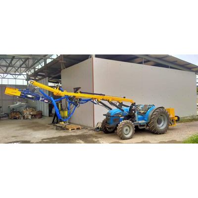Rolling movement of the swivel arm that brings the gripper laterally to work in intensive plantations