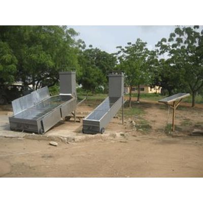 The design of solar dryers depends on many factors among others what product is supposed to be dried. KONSEBs solar dryer consists normally of a sun collector, equipped with appropriate fans and a drying chamber. The food stuff is spread on shelves, which are piled up in the chamber. To make the system independent of electric net, the fans are driven by electricity generated by photovoltaic panels.