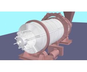 The steam pipe arrangement is patented (in the picture piping is shown without shell). Steam is distributed into pipe sectors at the discharge end via rotary joint.