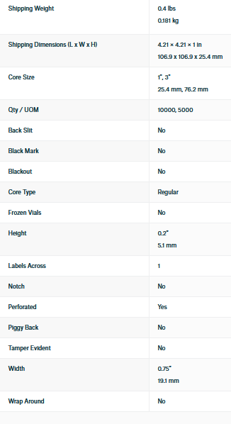 - Labels/roll: 5,000 or 10,000