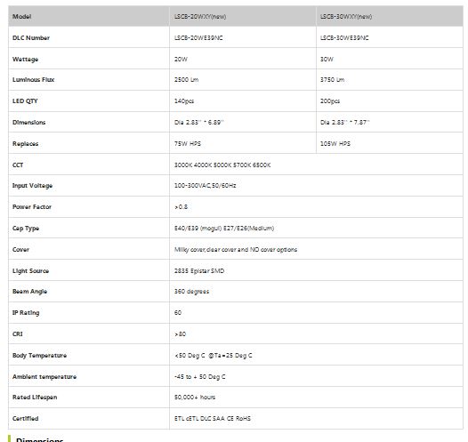 - Various lamp bases are available , a wide range of applications.(E39/E40 mogul, E26/E27 medium)