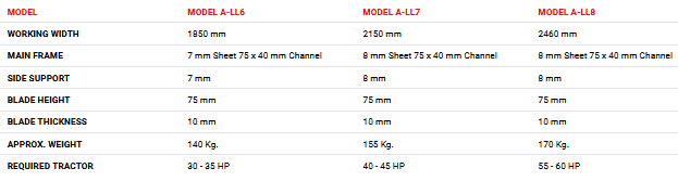 It is basic implement for leveling of land. It is a simple and rugged implement which is directly fitted to tractor. Very useful for agriculture purpose. Blades are hardened for longer life. Useful for increasing productivity and saves cost of irrigation. Rugged design for toughest operations. Rear Support for extra strength. Long Life Blades. Available with Rear 3 – Point Linkage (Optional).