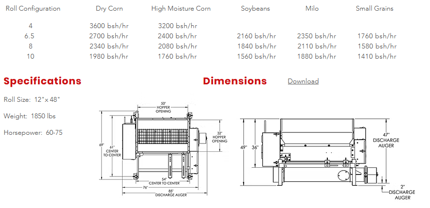 Our electric high-capacity roller mills are the perfect solution to processing large amounts of grain or corn livestock feed. Precise roll corrugations ensure uniform particle sizes, even at high volumes. All of our high-capacity roller mills feature heavy-duty rolls to maintain durability and are available in several profile sizes and designs to choose from. Adjusting the capacity of the ABC 900 Large Capacity Electric Roller Mill speed is determined by the type of feed you are processing.