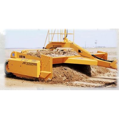 The IMC Model LCE Series Laser Ejector Finishing Scrapers are designed for precision leveling and grading with medium horsepower tractors. Featuring a dual side cylinder ejection system, the scrapers ensure efficient loading and unloading by utilizing cylinders that work together, eliminating the need for complex valve systems. The offset pivot walking tandem axles absorb bounce during loading, reducing side pivoting and enhancing the accuracy of laser/GPS equipment, allowing high-speed operations without compromising precision. Key features include hydraulic controlled cutting and spreading height, dual cylinder ejection system, heavy-duty pivot walking tandem, heavy-duty yoke and hitch assembly, independent hubs, high carbon reversible blade, Laser/GPS receiver platform, and external threaded cylinders. Options available are the Light Warning Kit, Carbide Embedded Cutting Edge, and Scraper Drawbar, making these scrapers versatile and reliable for various applications.