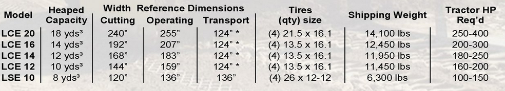 Features: Hydraulic controlled cutting & spreading height, dual cylinder ejection system, heavy duty pivot walking tandem, heavy duty yoke & hitch assembly, independent hubs, high carbon reversible blade, Laser/GPS receiver platform, external threaded cylinders, hard surfaced front and rear side wear plates, 10 vertical & horizontal rollers , spill over rack, increased throat opening.