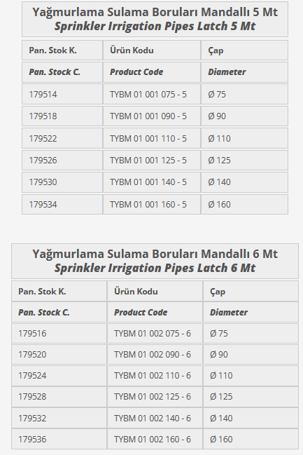 Sprinkler Irrigation Pipes Latch 5 Mt