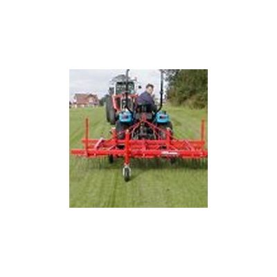 By mounting a pneumatic drill on the spring-tine harrow, not only an even spread of seed and fertilizer is ensured but also a fast establishment of new grass or fast uptake of the fertilizer.