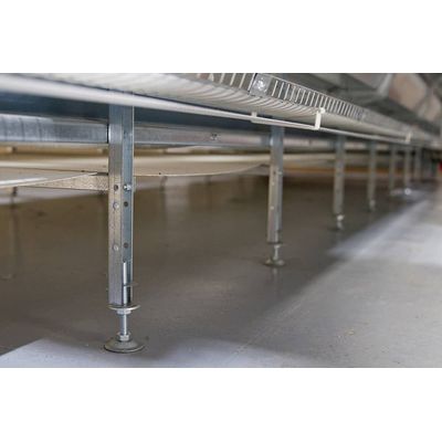 The distance between the bottom layer and the bottom layer is designed to be 160 mm in accordance. A height adjustment of 5 cm can be made to the lowest part of the cage by means of the leg adjusting bolt.
