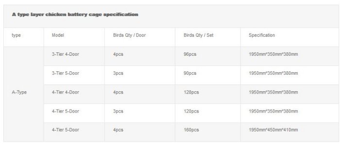 - Capacity: 90 - 160 Bird/Set.