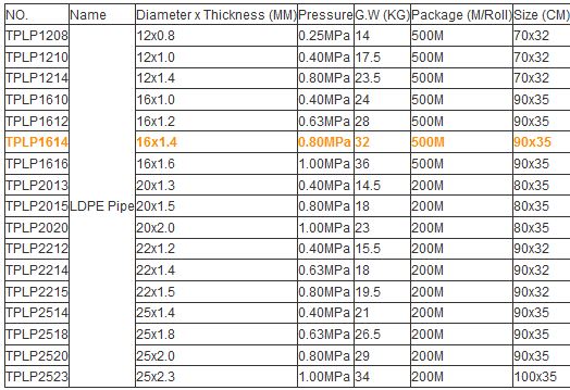 LDPE irrigation pipe