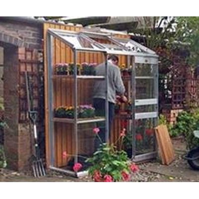 We supply two types of 2ft wide lean-to greenhouses – the Courtyard and the Terrace. The compact TERRACE 2ft wide lean-to greenhouse is a ‘dip-in’ style greenhouse which has been designed with limited space in mind and can be worked from the outside. It has an eave height of 5ft and a rear height of 6ft. Easily accessed by means of the sliding door, it comes supplied with one level of aluminium staging with treated wooden tops as standard. You can purchase additional staging, roof vents, extend the greenhouse in length, even colour the building for aesthetic value.