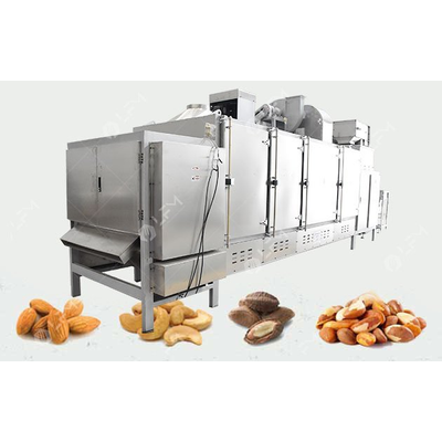 The brazil nut roasting machine is an electrically heated, fully automatic roaster. It has roasting and cooling functions and is suitable for large-scale continuous production. The roasted material has uniform color and no damage.