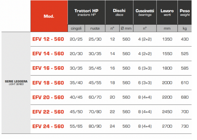 AngeloniModel EFV Series -Light Double Disc Harrow