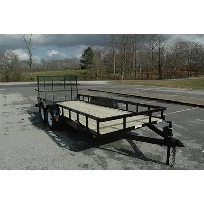 2 x 8 Treated Wood Floor. 4` Heavy Duty Landscape Gate. 2" A-Frame Coupler. A-Frame Tongue Jack. 2990# GVWR. D.O.T LED Lighting. 4-Way Plug. Fenders with Backing. 3 x 2 x 3/16 Angle Main Rail. 3 x 2 x 3/16 Angle Crossmembers. 4" Channel Tongue. 14" Tall Angle Top Rail. 2 - 3500# Idler Axles. 205/75R15 New Radial Tires. White Spoke Wheels. Safety Chains.