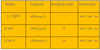 It is equipped with eggs from water tank - - - simple strong wind drying - - - - egg knocking - - separating egg liquid from eggshell.