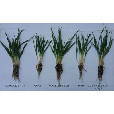 The quality raw materials used to formulate ALPINE G22 liquid fertilizer: Maximizes plant nutrient solubility, Minimizes salt index, Minimizes equipment corrosion, Is plant safe at recommended rates. Seventy percent of the phosphate is present in the orthophosphate form that is immediately available for plant absorption and metabolism. During times of limited phosphate and potassium availability (eg: cold and wet spring soil conditions present at planting), ALPINE G22 liquid fertilizer provides a phosphate and potassium source that is positionally and nutritionally available.