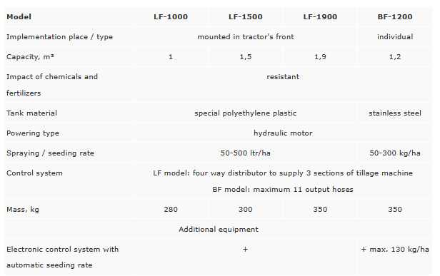 Laumetris built fertilizing systems can be implemented with various Laumetris and other brands` tillage equipment. Liquid and bulk fertilizing systems` tanks and all components are resistant to chemical and ferlizers impact. Installment of either fertilizing system on your machine will greatly reduce costs of tillaging by making your machine universal - accomplishing few processes on a single drive.