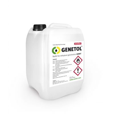 GENETOL is liquid used in the GENET ethylene generator. Catalytic dehydrogenation at high temperature of the liquid produce pure ethylene. The concentration produced is absolutely safe: it is 30 – 50 times less than explosive limit.