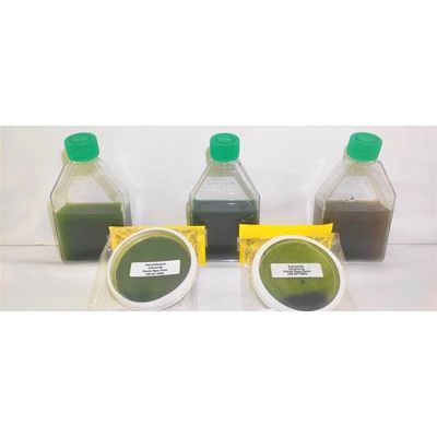 We can supply petri-dish cultures of the most common aquaculture and freshwater species. These will last for over six months in a cool place in low light conditions. To reactive the culture just add autoclaved water to the petri dish to cover the culture, re-cover the disk and provide light for a day. Then use a sterile cotton swab to wipe the cells into your usual culture medium in sterile seawater and culture as you would a normal master culture.