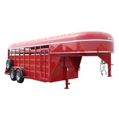 Delta Manufacturing offers you a wide variety of choices with the 500 Series. It comes in lengths up to 18 feet in the bumper pull model and 20 feet in the gooseneck version. The escape door is flush with the sides, and a back gate with 1/2 slider and center gate outside latch release are standard. The pressure-treated wood floor is screwed to the frame crossmembers. The fenders and roof are completely sealed on the outside. The bumper pull model includes gravel guard on the front. Delta applies a rust resistant primer and high-solid urethane paint to each of its trailers to ensure long lasting color and incredible shine.