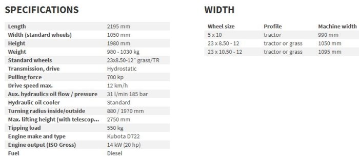 Avant 400 series loaders are real narrow access specialists and the smallest diesel model in the range. In spite of the small size and low weight of the 400 series, the lifting capacity of the loader is noteworthy with over 500 kg handled with ease. The loader`s turning radius is less than two meters which means the loader turns almost on the spot. Total machine width can be as narrow as 930 mm. The Avant telescopic boom is available for 400 series as well and with it, the lifting height is as high as 2,75 meters.