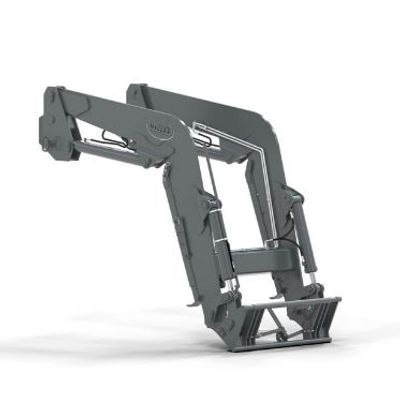 Mast mount, designed for machines with limited space between the front tires, fuel tanks and exhaust systems. Machines with longer hoods are best accommodated with this loader. Requires newer machines (approximately 1996 and newer) which provide mounting to the tractors frame/castings.